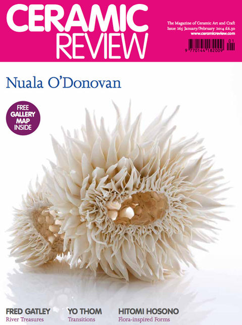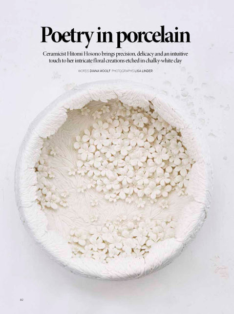 Hitomi Hosono’s detailed porcelain vessels reference the natural world and botanical specimens. With a chalk-like finish and gold embellishments, the work captivates with its delicacy and has attracted the patronage of curators from the British Museum and Victoria and Albert Museum.